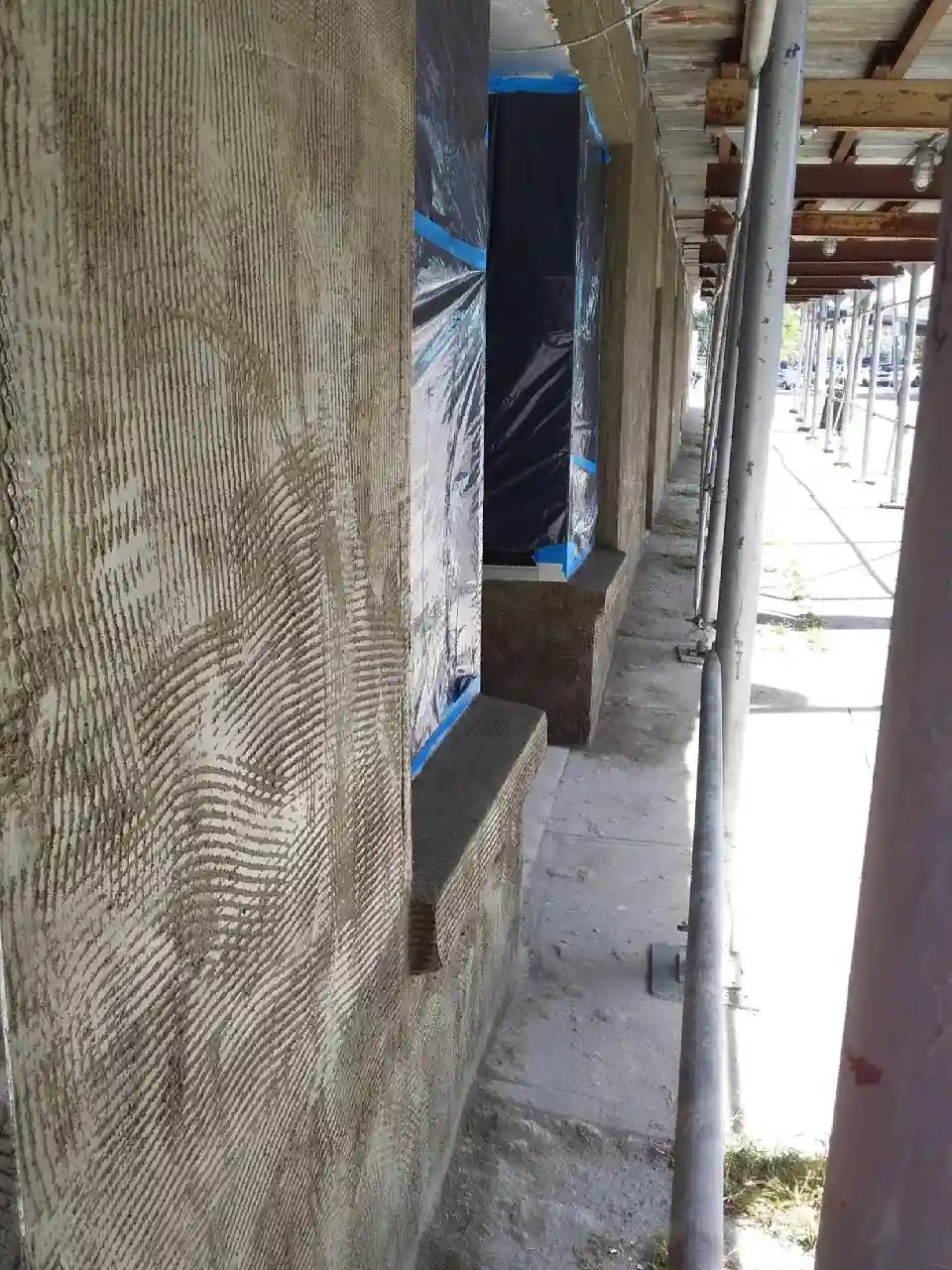 This recently completed cement stucco project in Brooklyn, New York, highlights our team's thorough and professional approach to commercial exterior stucco restoration. Our skilled stucco contractors began by installing wire lath directly over the existing deteriorated stucco surface, creating a solid bonding foundation for the new application. We then applied a scratch coat, allowing it to fully cure before applying the final smooth coat finish, resulting in a clean, seamless, and uniform white exterior. Once the smooth coat dried completely, we applied two coats of MasterProtect HB-400 100% acrylic waterproofing Thoro coat paint, ensuring long-lasting protection against moisture, weathering, and the harsh New York City elements. This multi-step stucco restoration process guarantees superior adhesion, durability, and a high-end professional finish — making it an ideal solution for commercial and residential properties across Brooklyn and the greater NYC area with deteriorating or aging stucco exteriors.