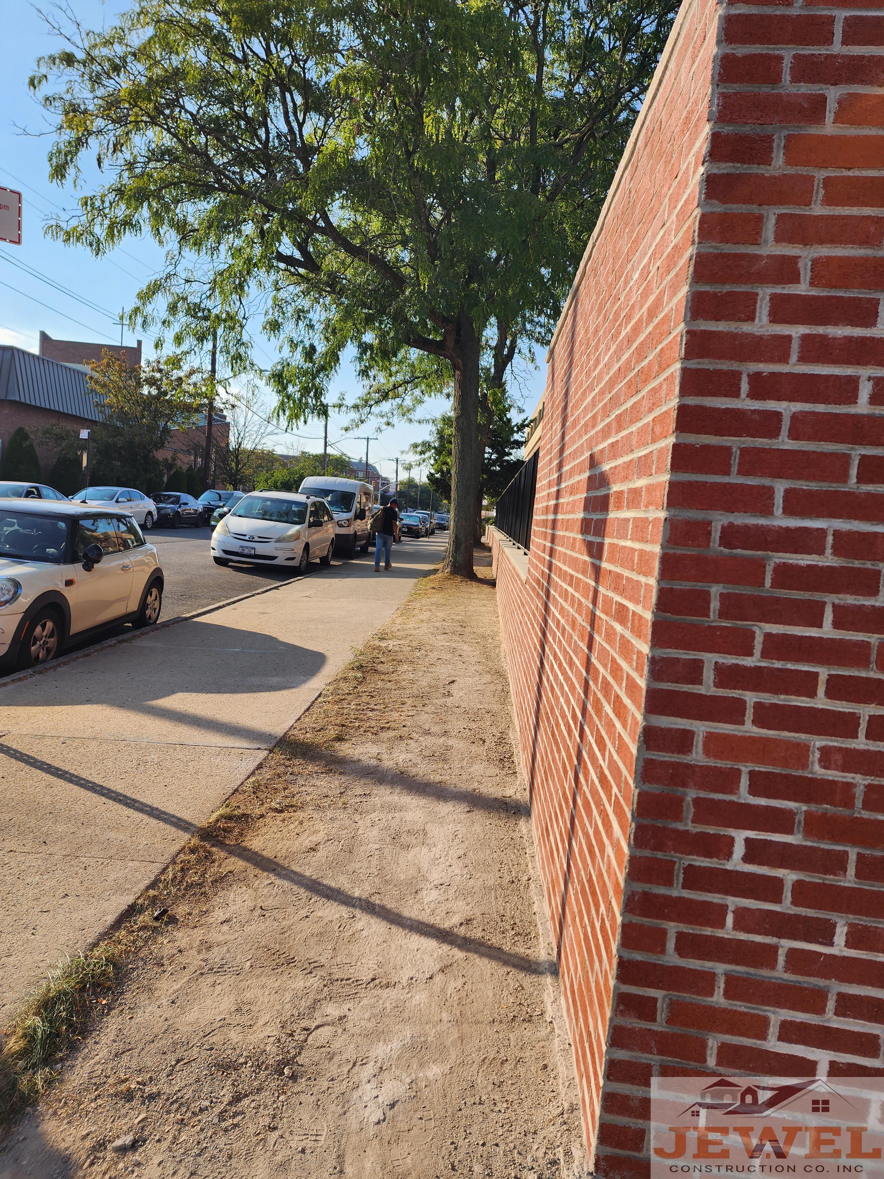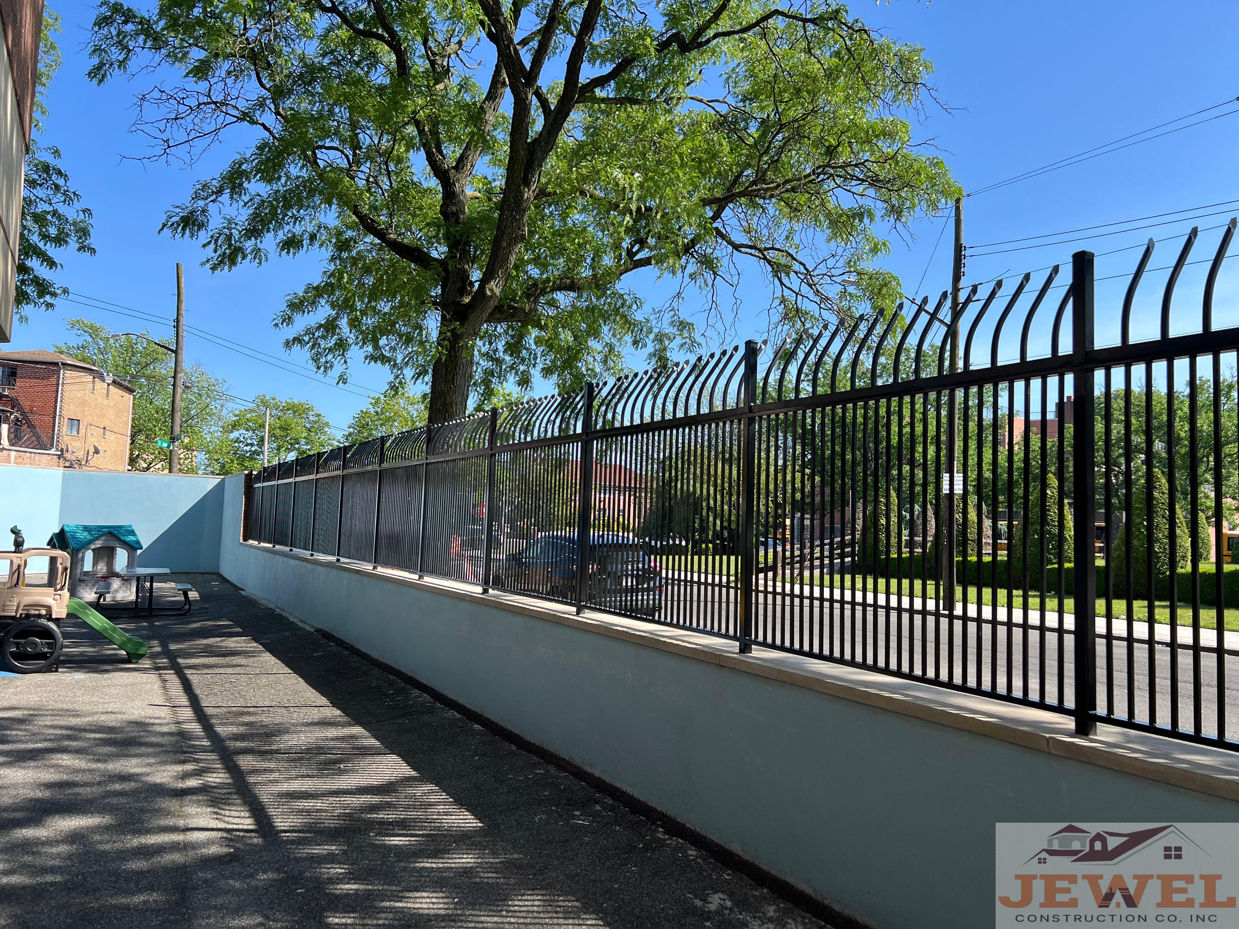 This distinguished perimeter installation features a newly constructed red brick foundation wall, expertly topped with elegant limestone capping for a refined, timeless finish. The custom cast iron fence with vertical pickets provides superior security while maintaining an open, welcoming appearance for this institutional property. The craftsmanship shines through precise brick coursing, seamless limestone cap installation, and secure fence mounting that ensures long-term durability. The combination of traditional materials—brick, limestone, and cast iron—creates an architectural statement that blends strength with sophistication. Jewel Construction Company's meticulous execution—from level masonry work to perfectly aligned fence sections—delivers a premium boundary solution that enhances curb appeal and provides lasting value for years to come.
